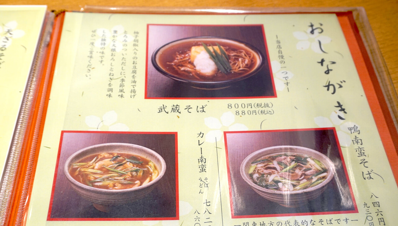 そして、こちらのお店の名物であり、私の冬の定番メニュー『武蔵そば』880円。
