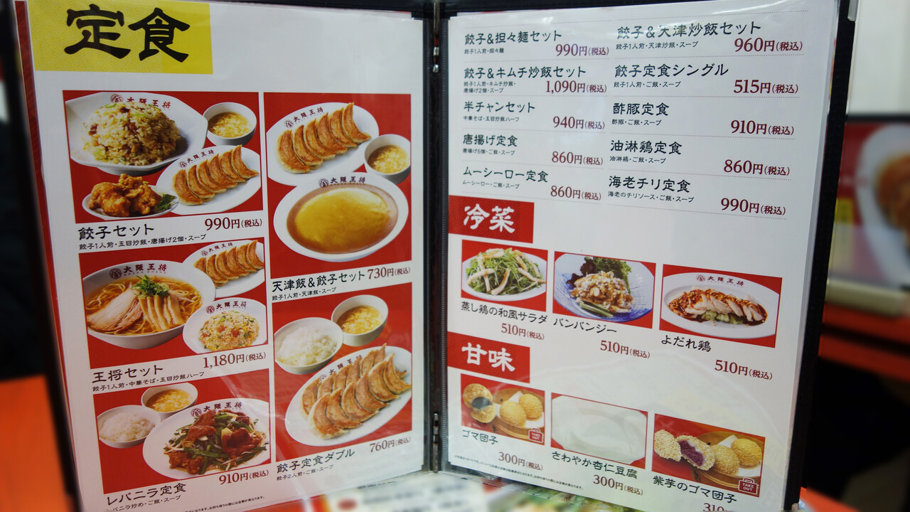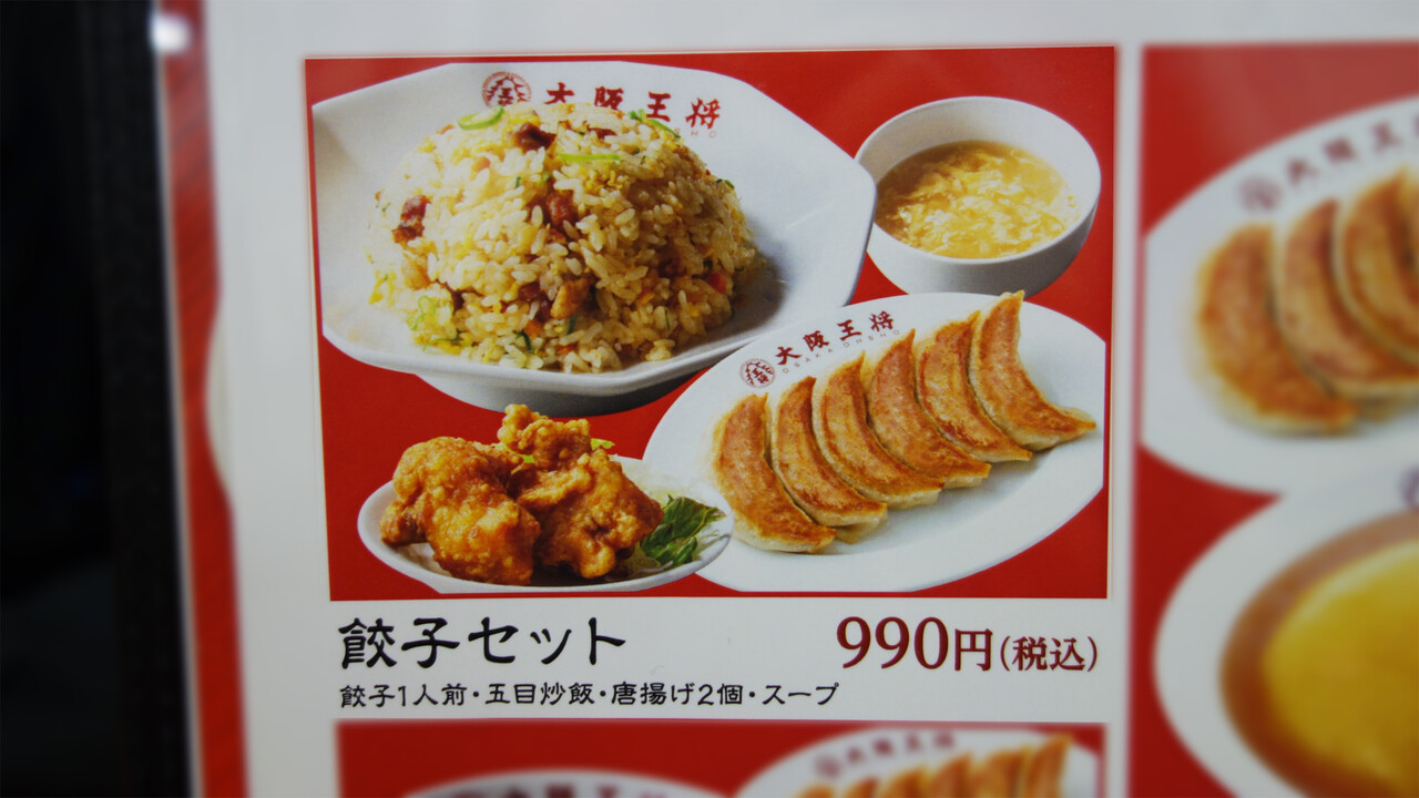 こちらは、定食メニューの『餃子セット』990円。