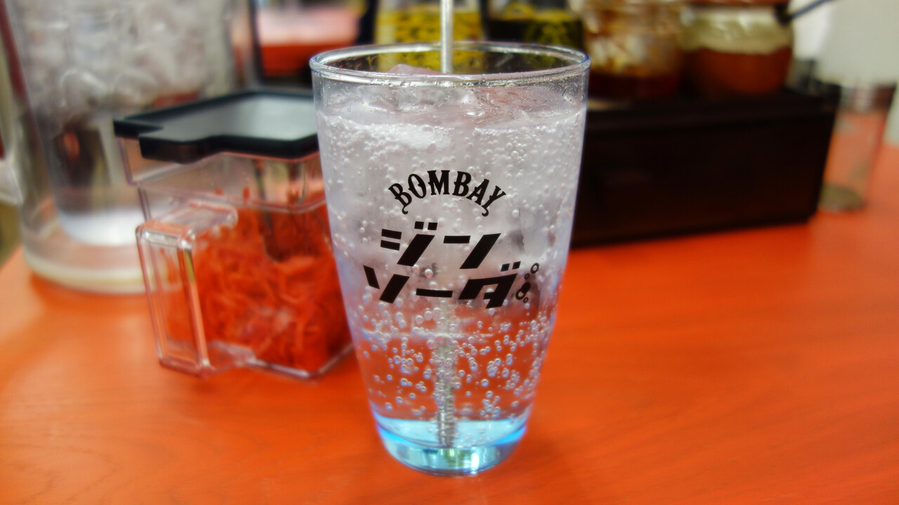 食堂には珍しいジンソーダを頼んでみました。