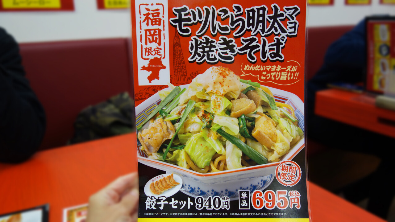 こちらは、福岡限定の『モツにら明太マヨ焼きそば』。
