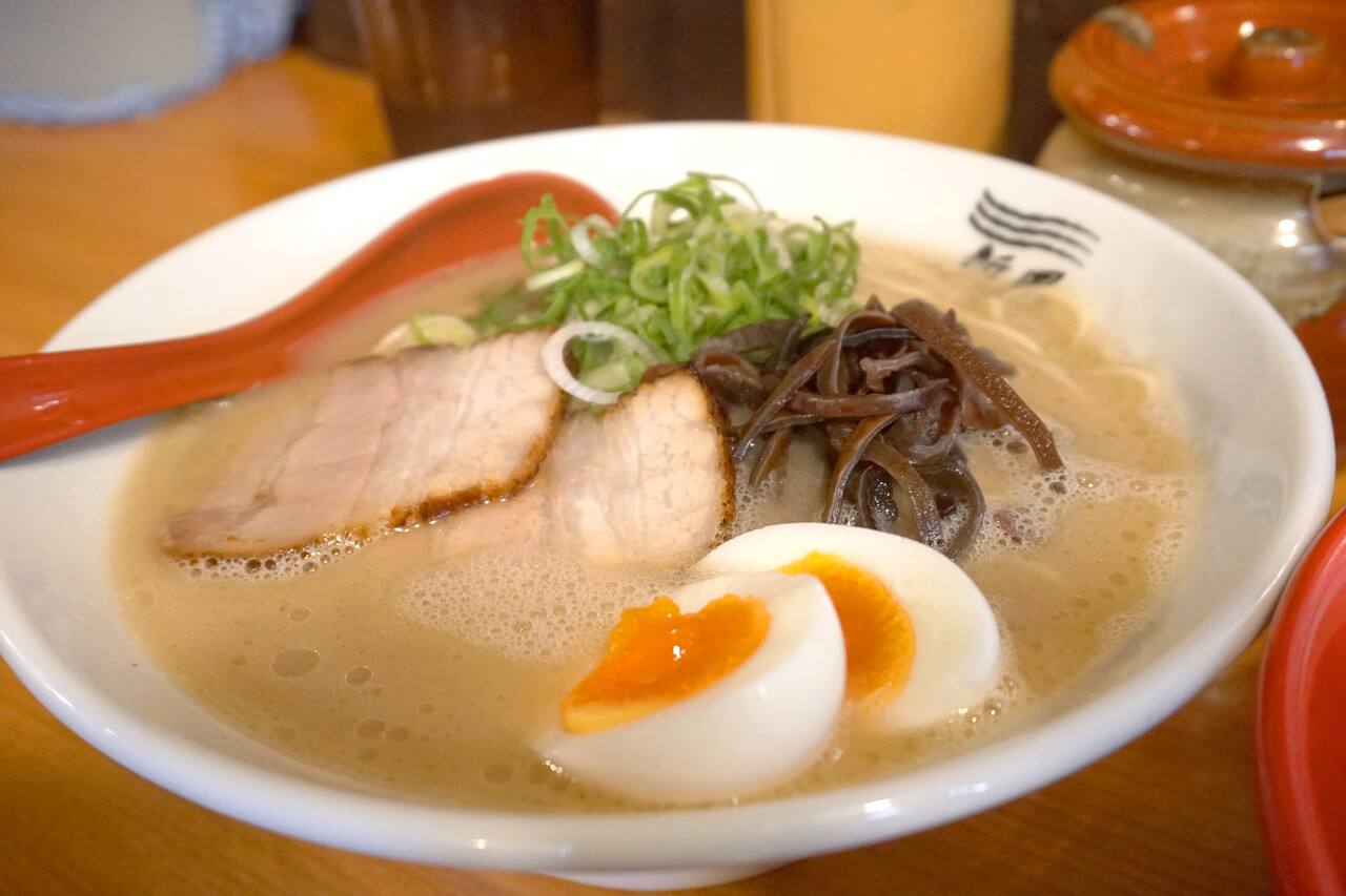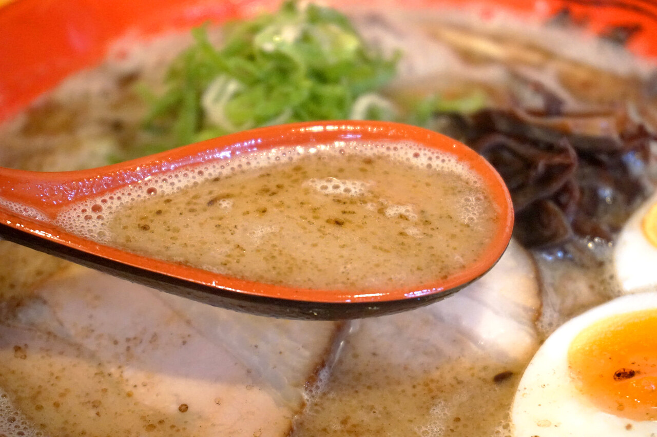 コク深でマイルドな豚骨スープに、ほんのりニンニクが香るマー油が絶妙な旨さ。