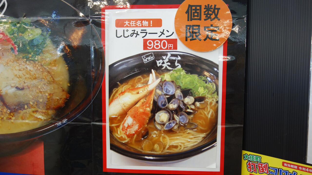 こちらは非豚骨醤油味のしじみラーメン(カニ爪のほうが目立ってる、笑)。