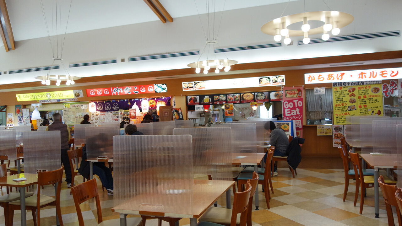 農産物や加工品の直売所に加え、フードコート、温泉施設、1億円のトイレ、広い公園もある、