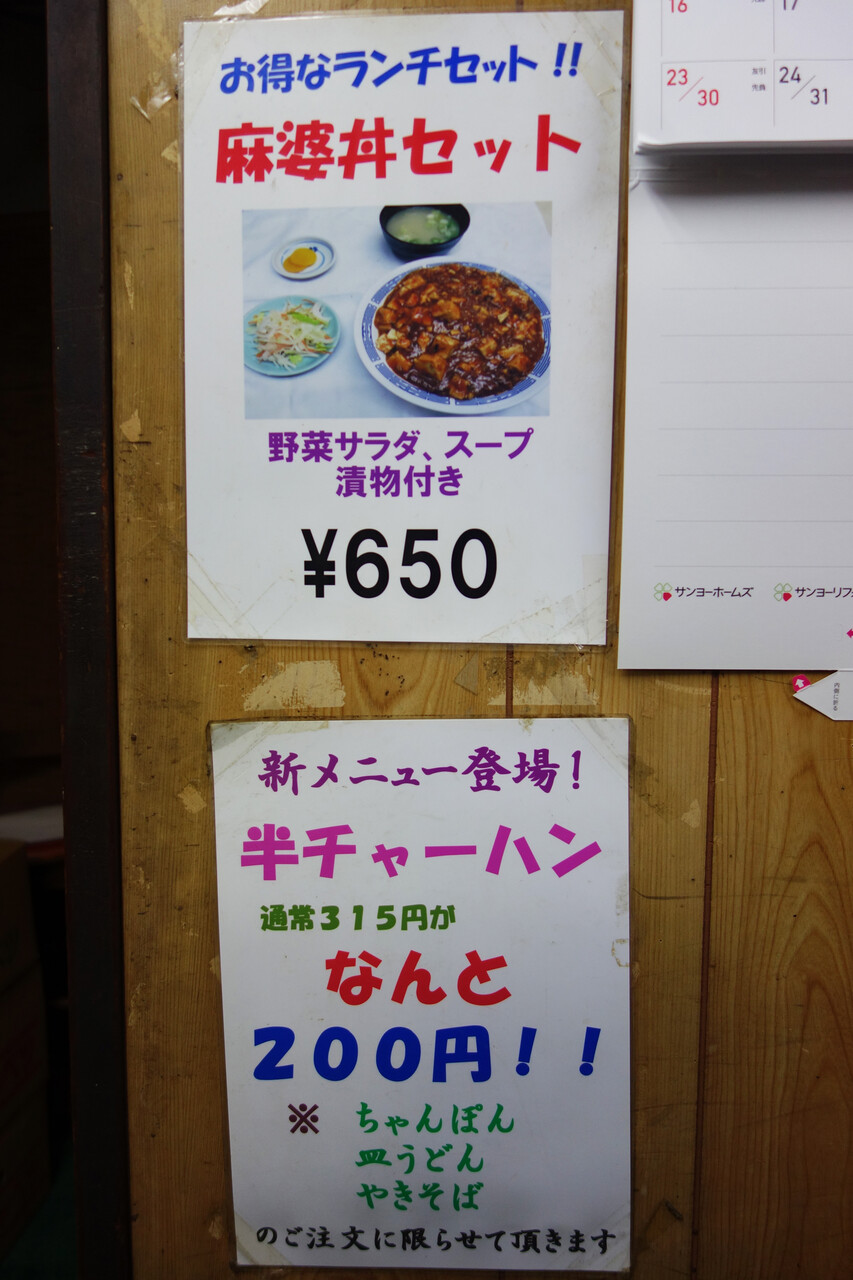 看板に『北京料理』とあるのは、昔に本格的な中華料理を出していた頃の名残だそうです。