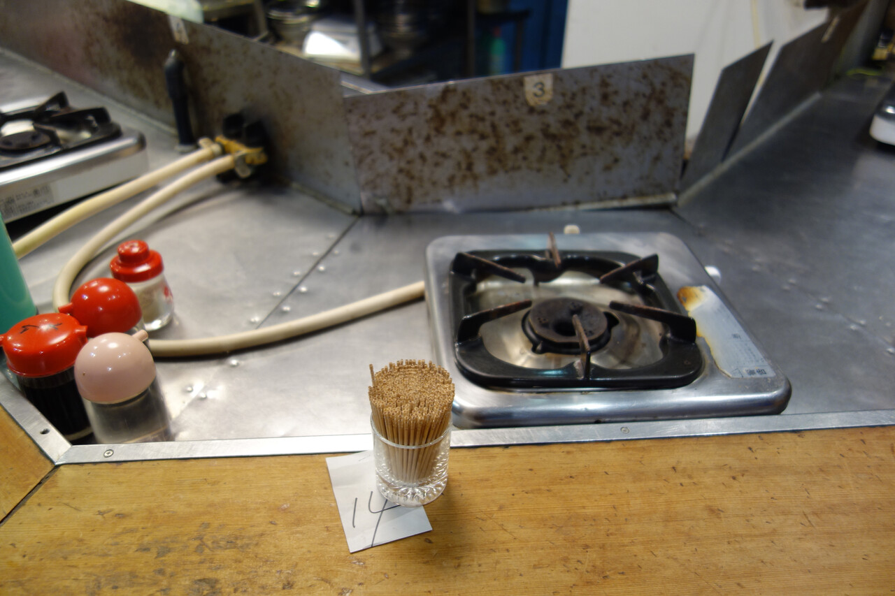 夜はもつ鍋屋さんになるので、コンロ付きのカウンター席です。