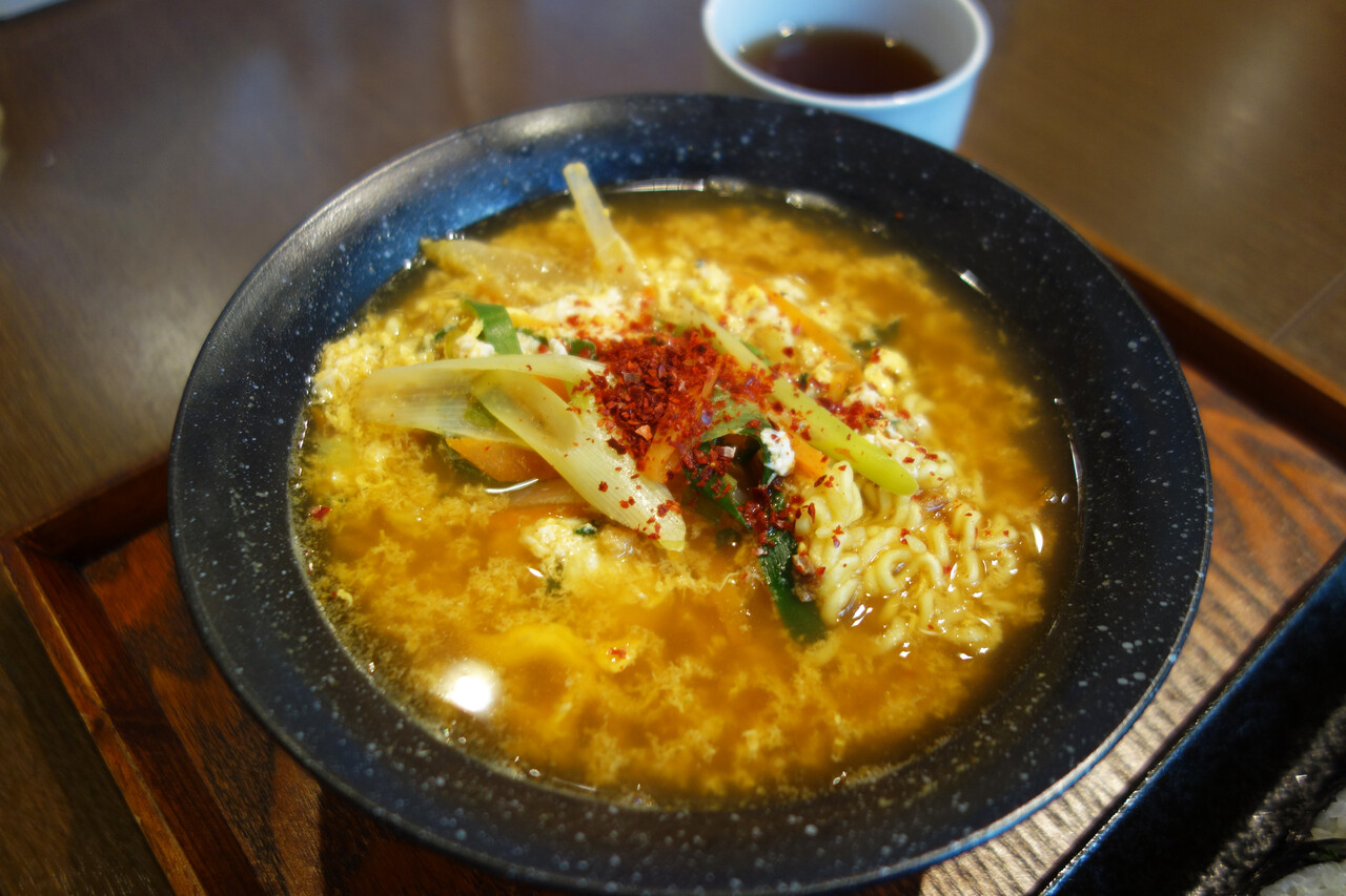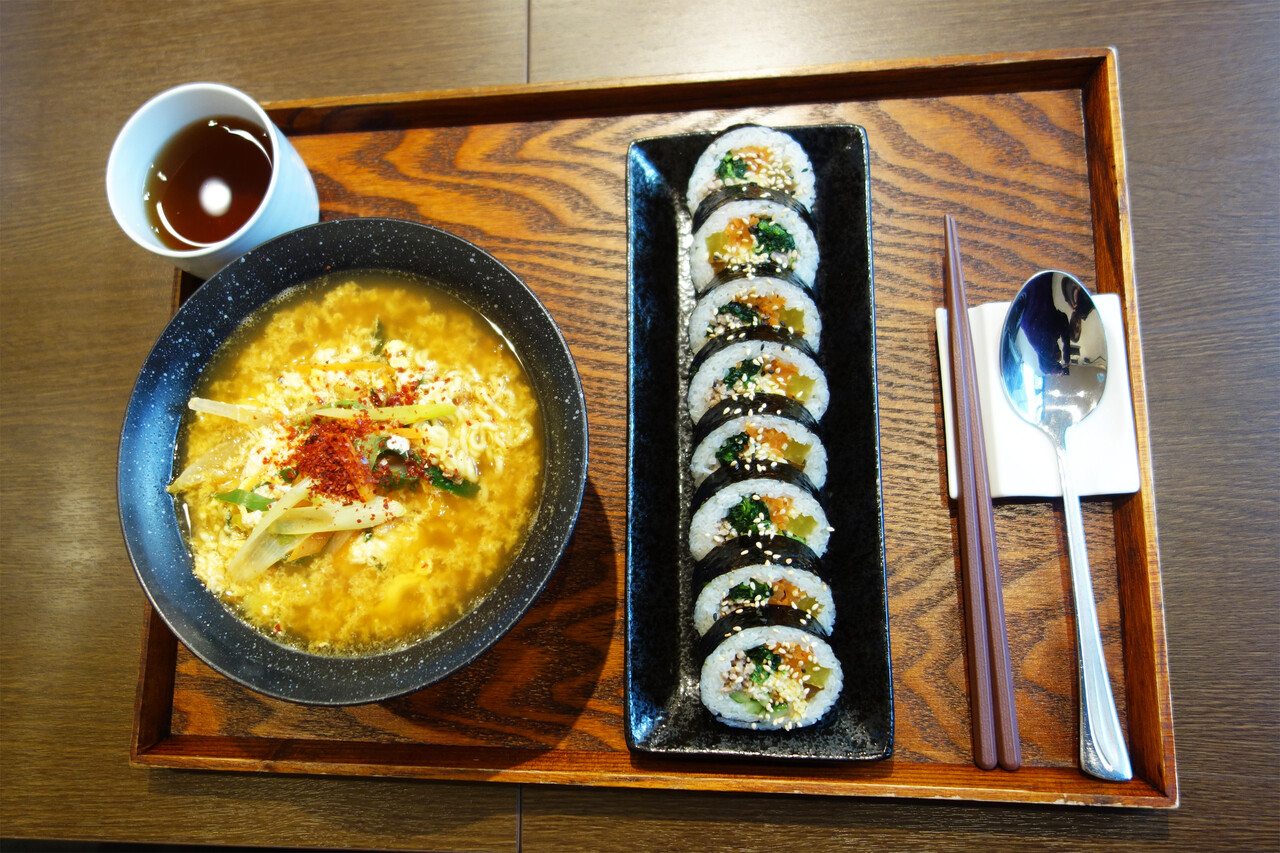 ラーメン&キンパセット1,280円は、どちらかというと、キンパ(単品900円)に辛ラーメンが付いたセットという見方が分かりやすいですね。