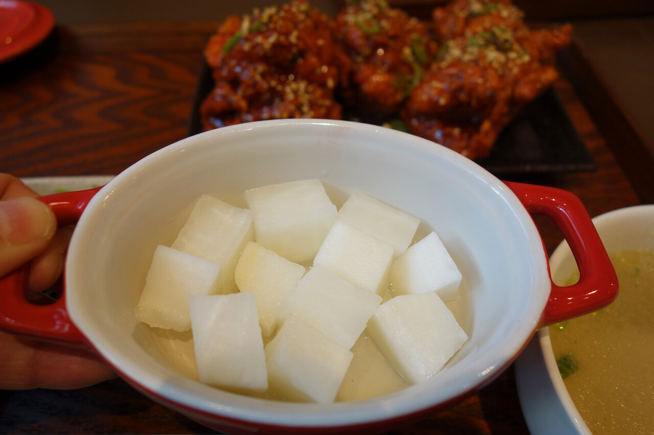 可愛いココット鍋に入っているのは、韓国では鶏料理のお供の定番だという『チキンム』。