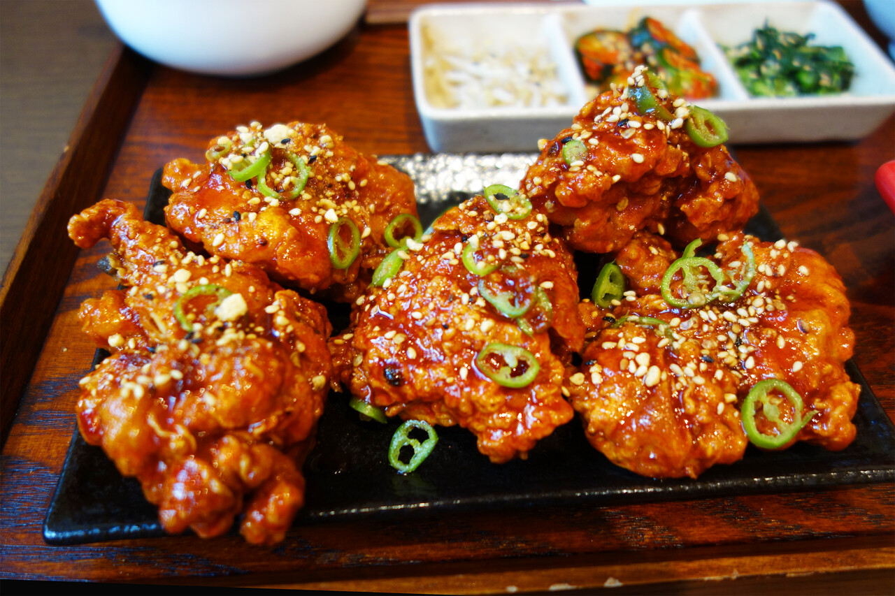 こちらは、近年大ブームの韓国式フライドチキン『ヤンニョムチキン』です。