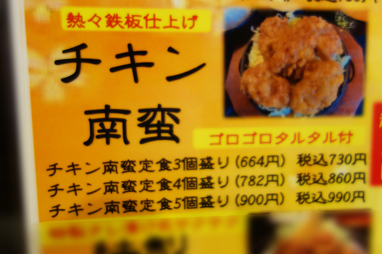 チキンメニューは、唐揚げ・チキン南蛮・親子丼の3種類。