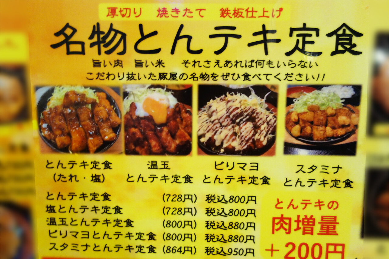 名物は、白メシに合い過ぎるウマ濃い厚切りトンテキです。