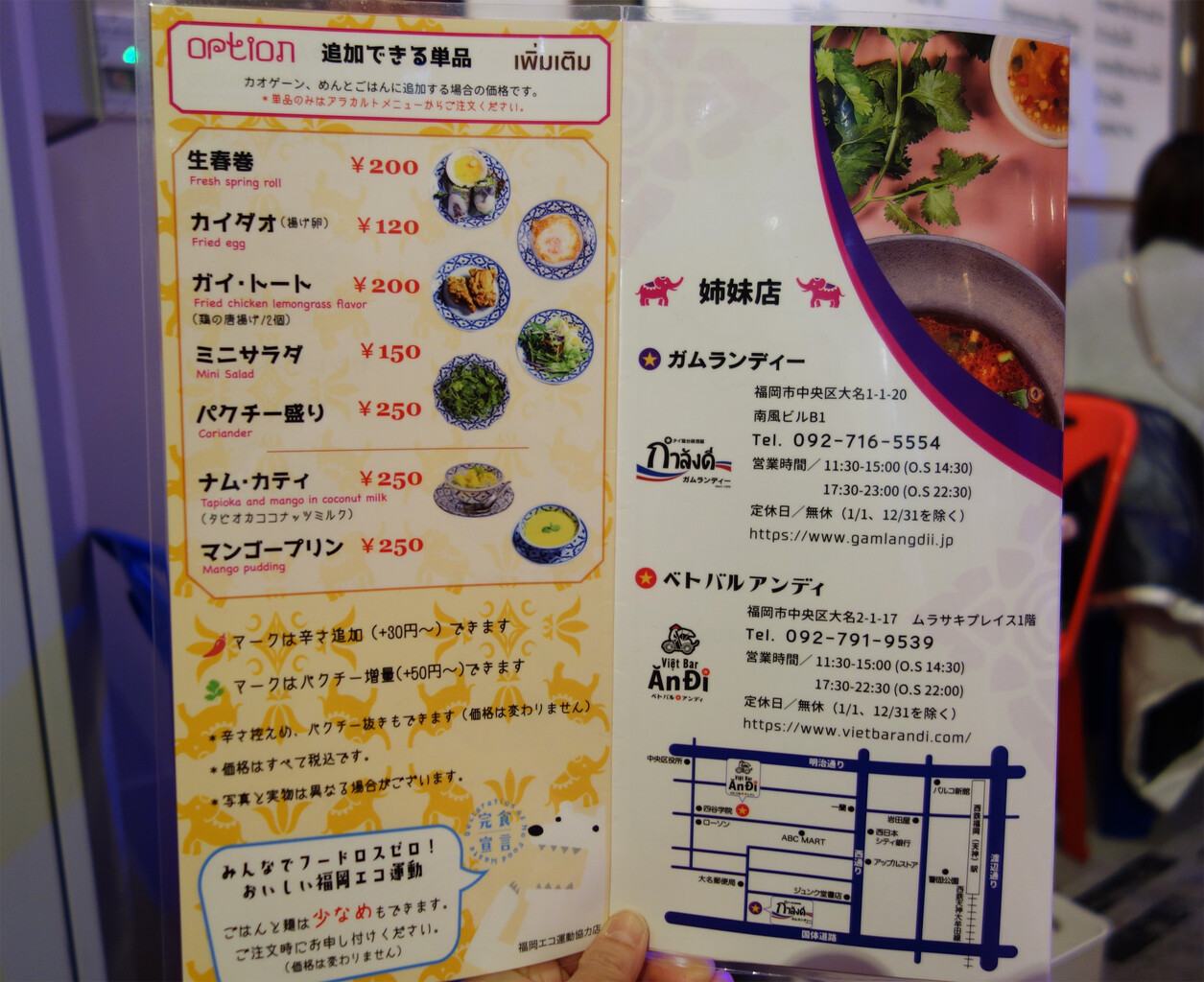 ※他に、大名本店・天神西通り店(旧ベトバルアンディ)があります。