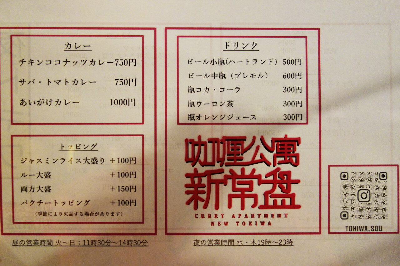 【店名】カレーアパート ニュートキワ(咖喱公寓 新常盤) 公式Instagram