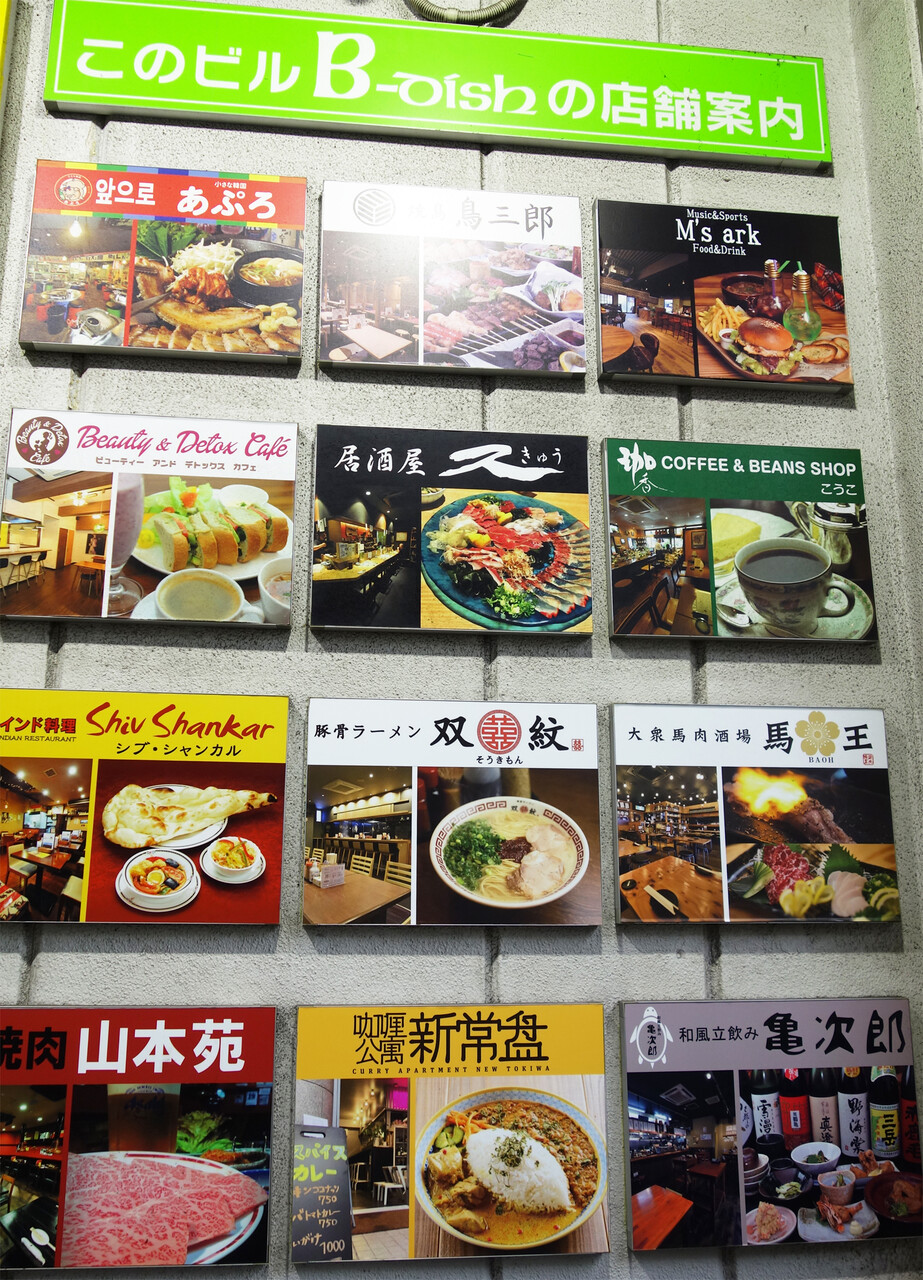 焼鳥・韓国料理・焼肉・居酒屋・ラーメンなど大衆的なテナントが入っています。