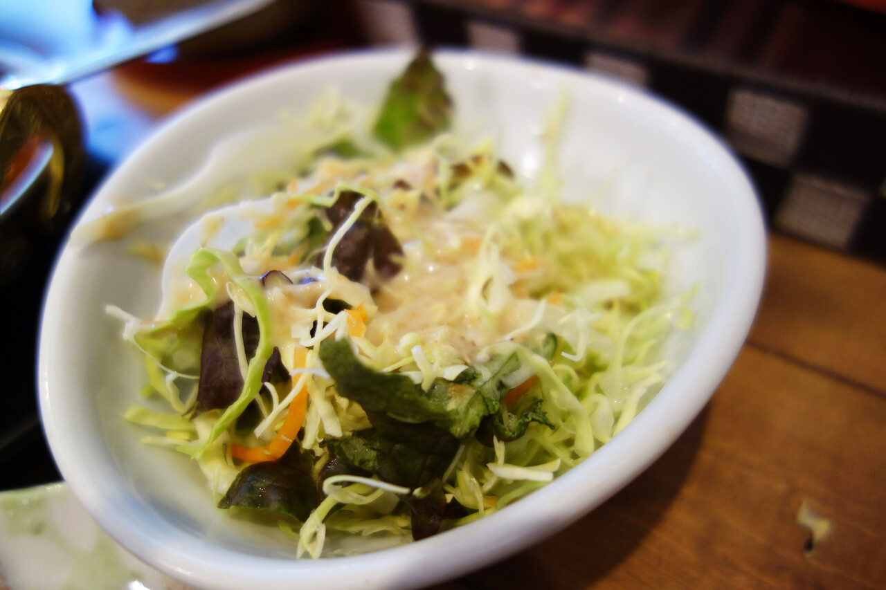 インドカレー屋によくある濃ゆいオレンジ色のドレッシングではありませんでした(笑)。
