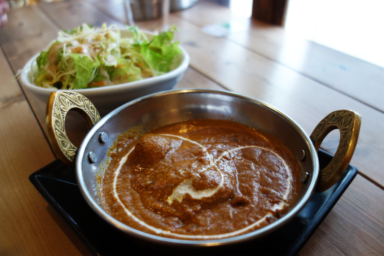 プレーンナン/ライスとサラダがおかわりできる、お得なカレーセットがあります。