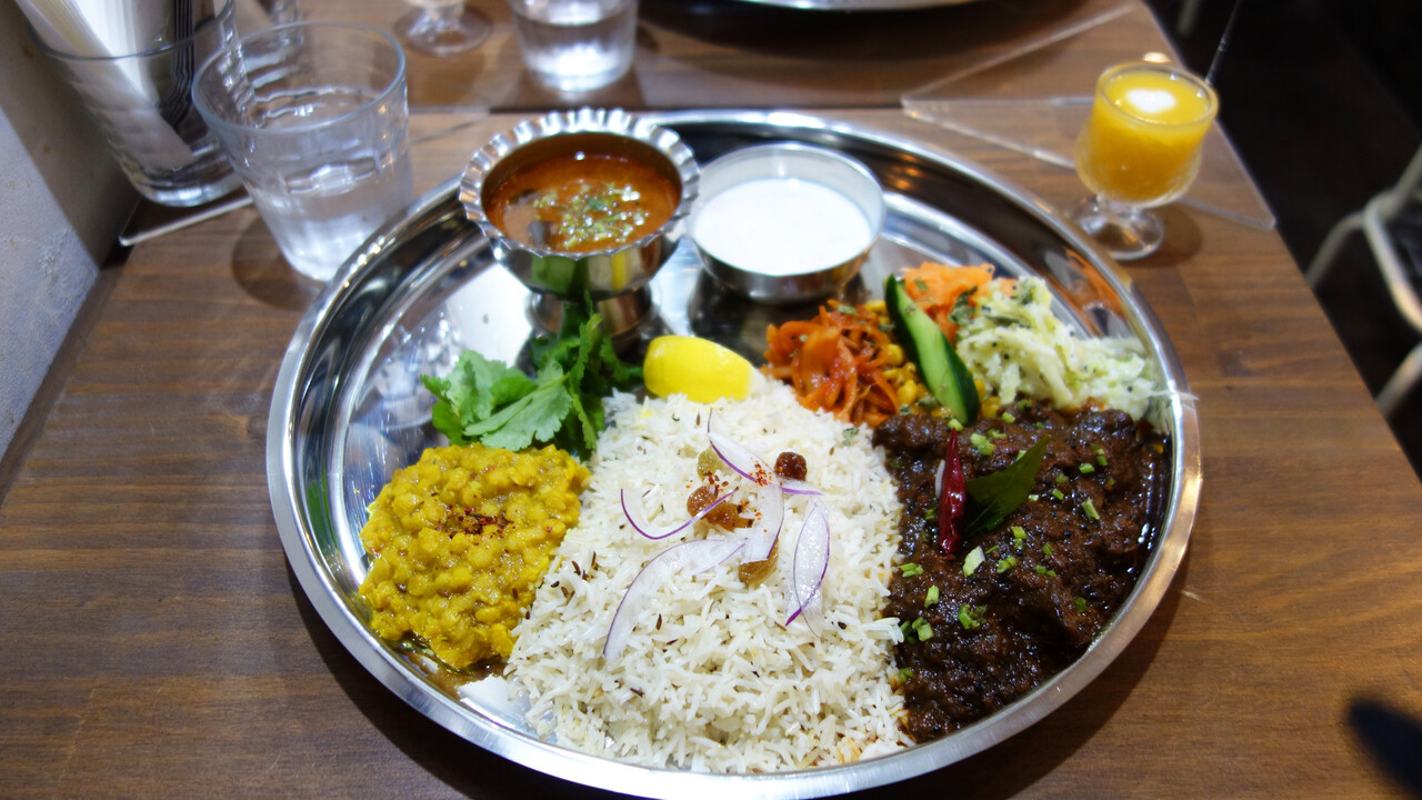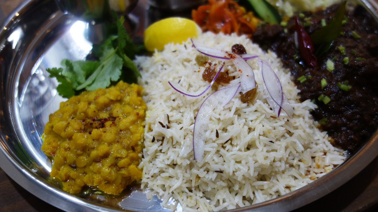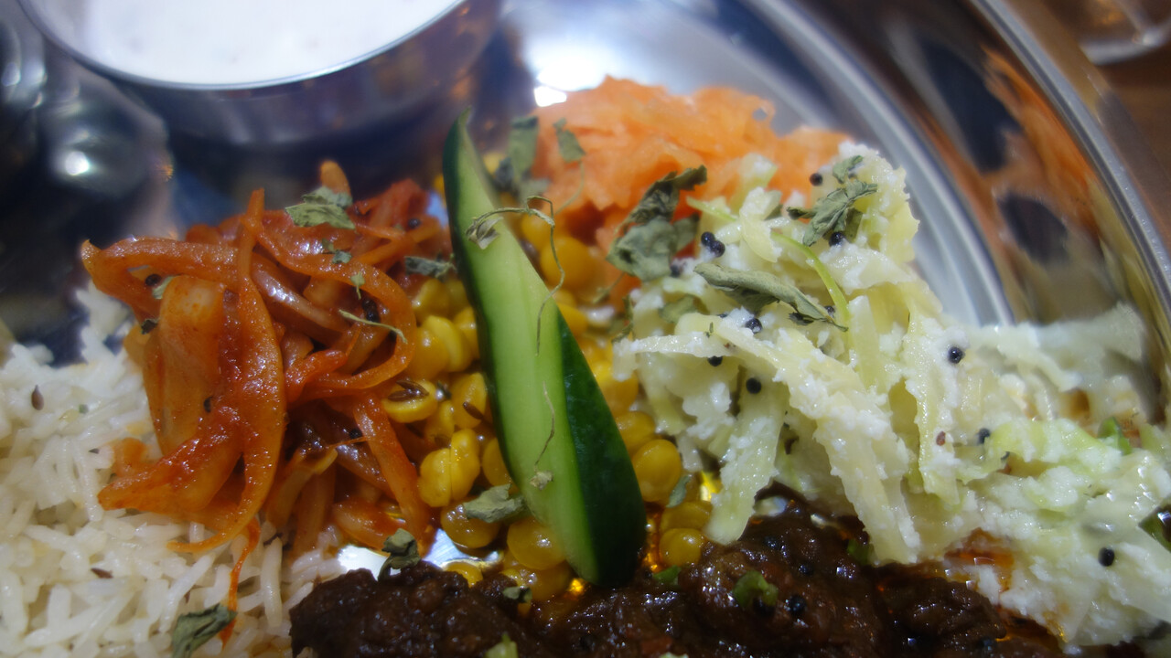 柔らかく煮こんだ牛の引きスジのような食感のお肉に、ねっとりルー、細やかに炸裂するスパイス爆弾。