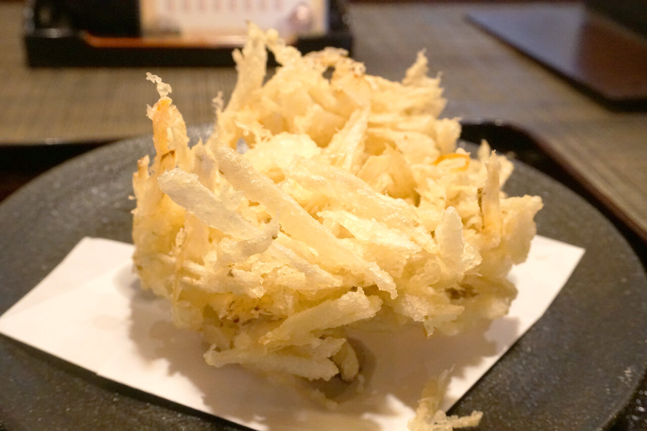 ごぼ天はかき揚げタイプ、揚げたてで熱々です。