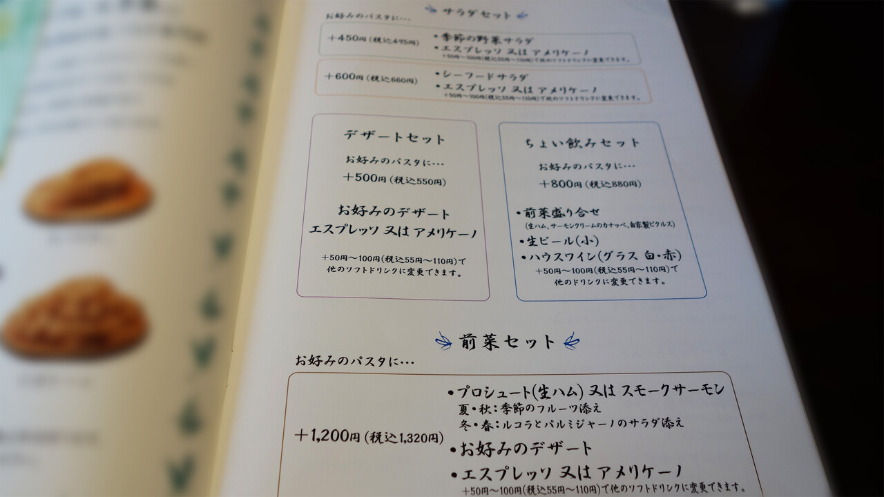 尚、こちらはパスタ専門店ですが、ドリンクやスイーツメニューもあるので、カフェ利用も出来ます。