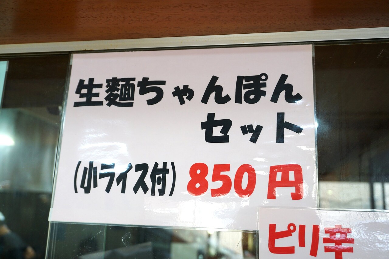 ちゃんぽんメニューは、ちゃんぽん700円・生麺ちゃんぽん750円・上ちゃんぽん1,000円があります。
