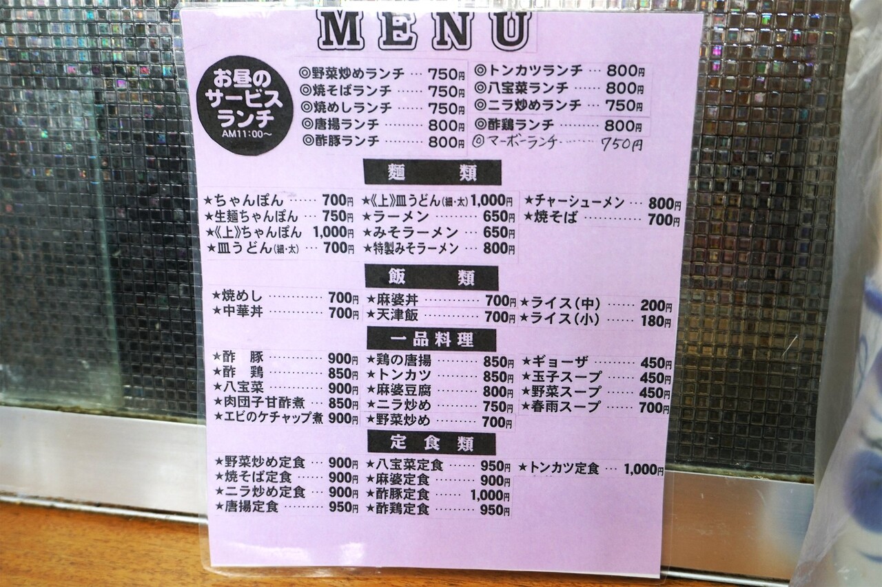 他に、ちゃんぽん・皿うどん・サービスランチ・各種定食が揃った、大衆的なお店です。