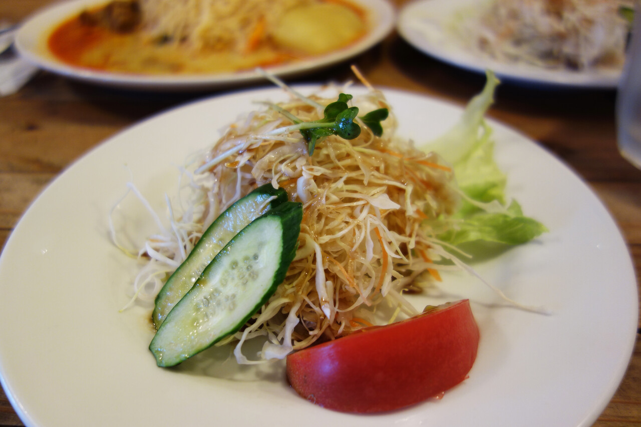 エスニックカレー店なのに、なぜか昔から和風醤油ドレッシングです。