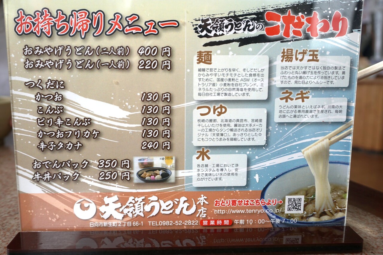 『天領うどん』という店名は、江戸時代に日向国が天領(幕府直轄領)だったことに由来するそうです。
