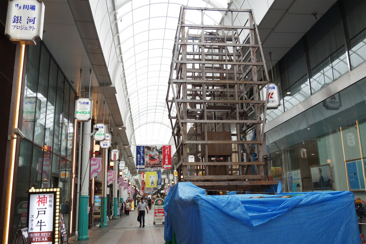 商店街では、飾り山笠の準備中でした。※もう終わりました(笑)。