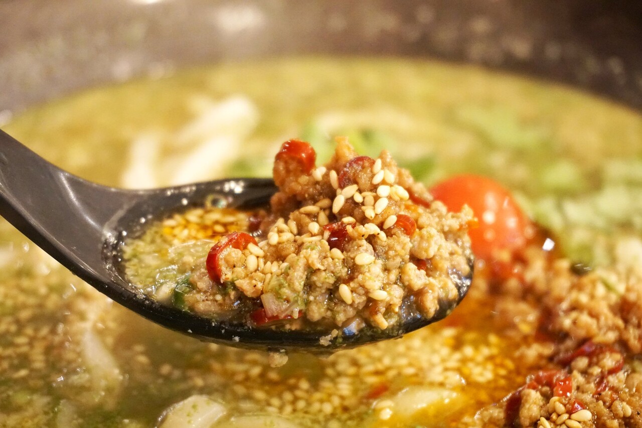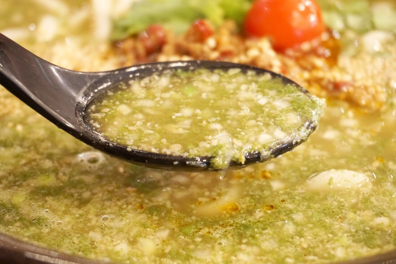 今回は、『緑辛麺』980円を頂きました。