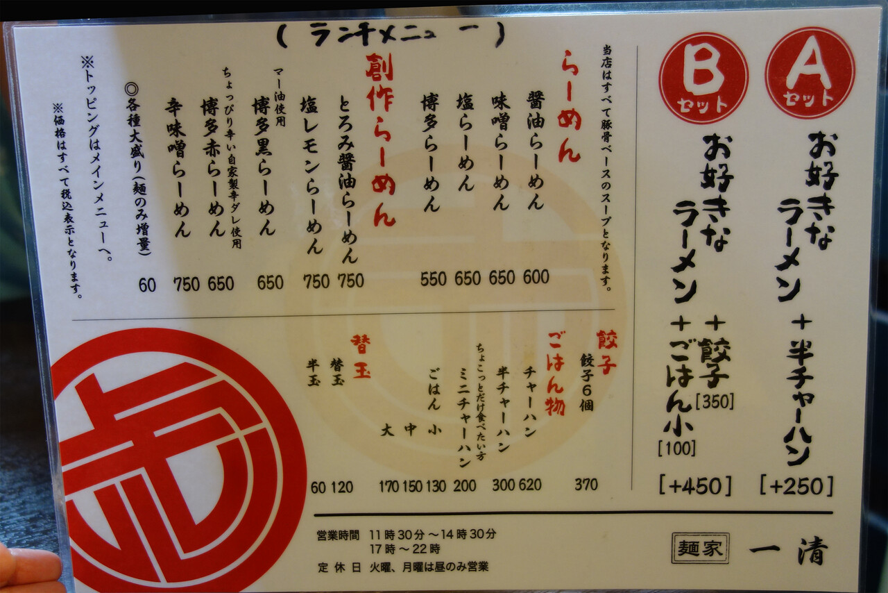 【店名】麺家 一清(めんやいっせい)