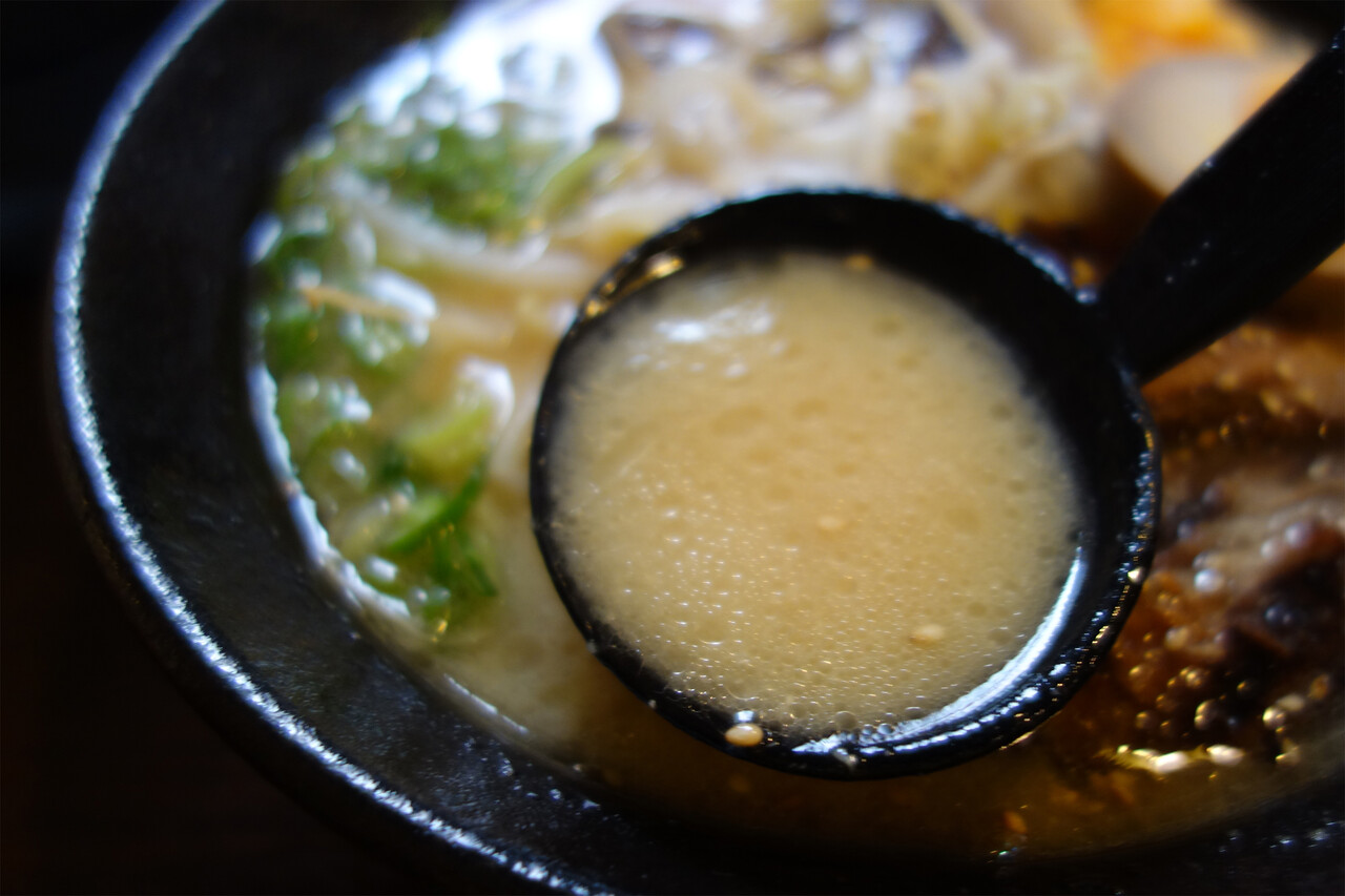 ベースはあっさり豚骨醤油ですが、とろみ強めで、クセになりそうな喉ごしです。