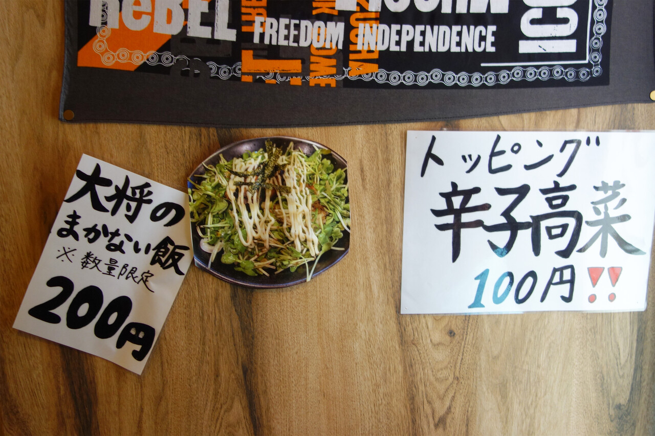 今回は壁面にあった『大将のまかない飯』200円を頂きました。