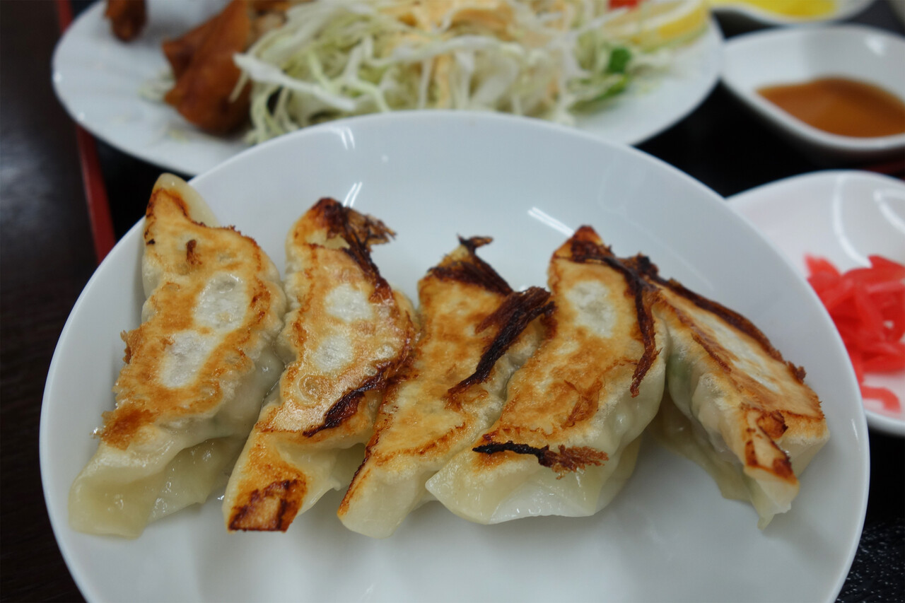 冷麺に、餃子5個・ミニ焼めしが付いています。