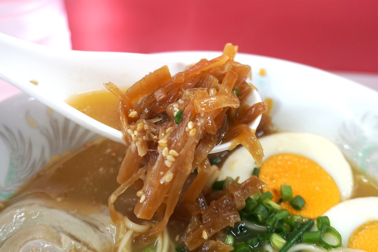 基本の『ラーメン』に、メンマとゆで玉子スライスがプラスされた豪華ラーメンです。