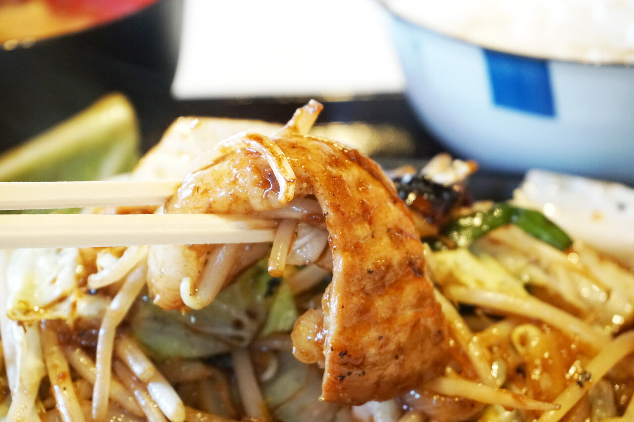 うま濃いタレで炒めたシマ腸と、野菜がたまらない旨さで、ご飯が進む味付けです。