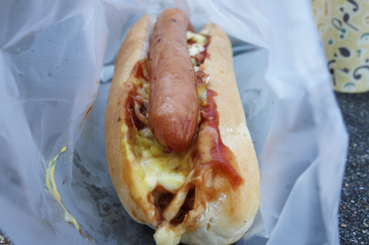 注文があってから、都度作り立てを出してくれるホットドッグとコーヒー。