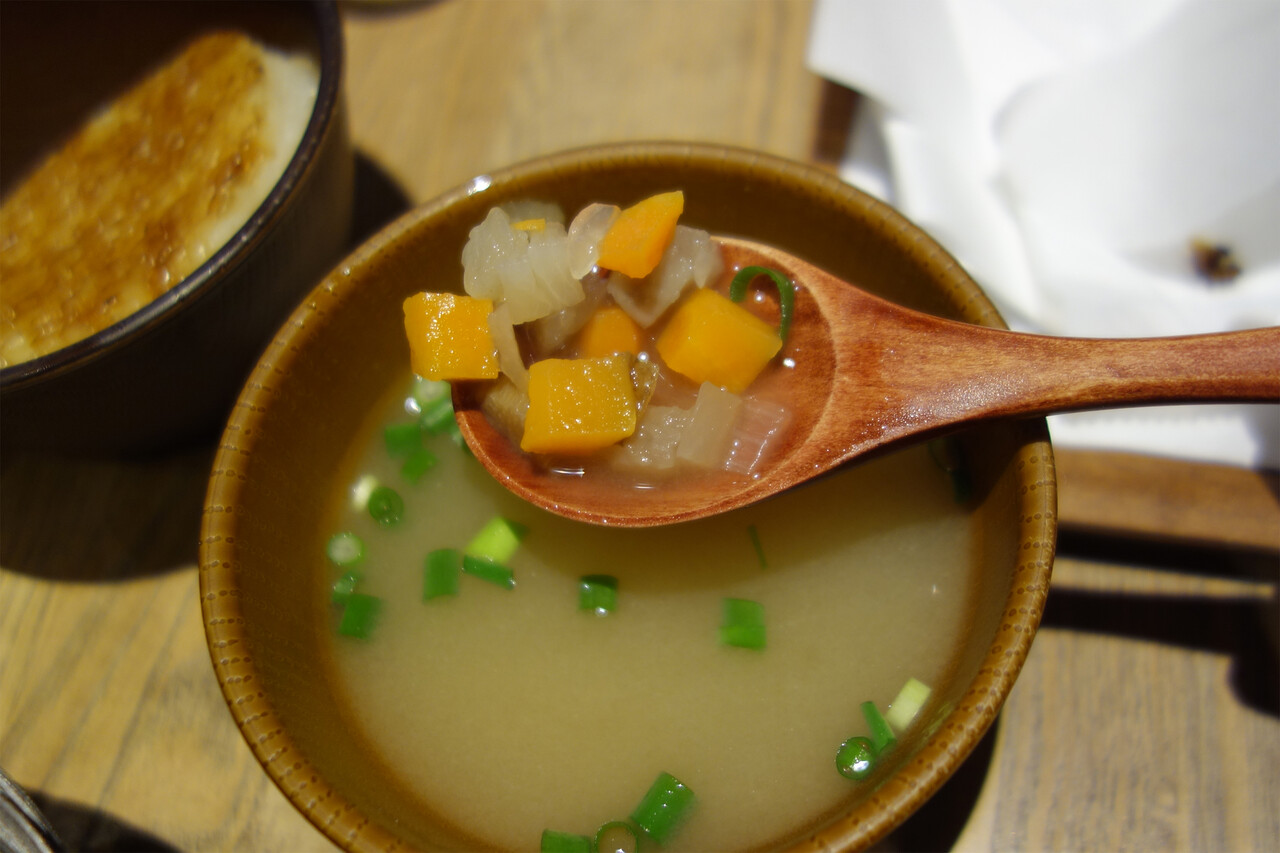 お出汁コーナーで、お椀に好みの出汁を注ぎ、お茶漬けの完成です。