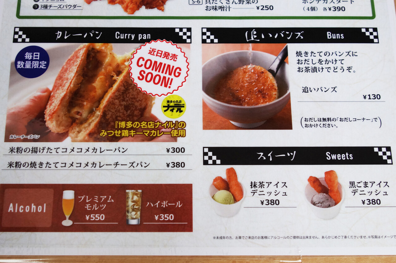 他に、ライスバーガーに付けられるセットメニュー数種から、