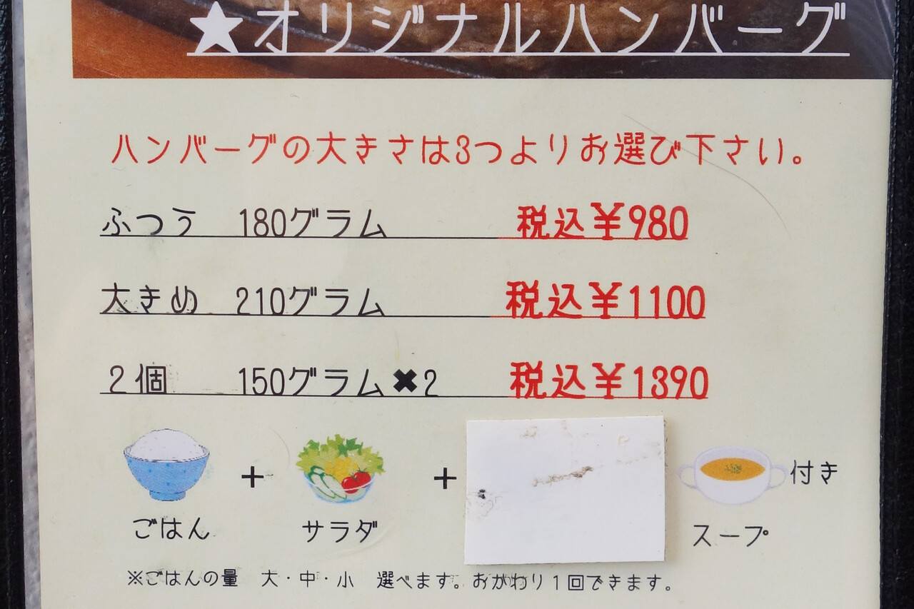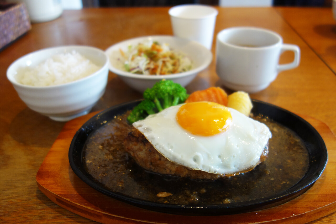 ハンバーグは全て定食になっており、ご飯・サラダ・スープが付いています。