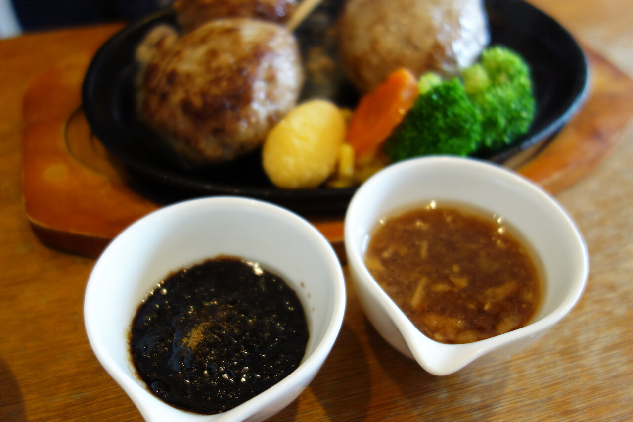 ジンジャー・デミグラス・バルサミコ・和風おろし・香味タマネギの5種類です。