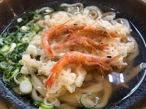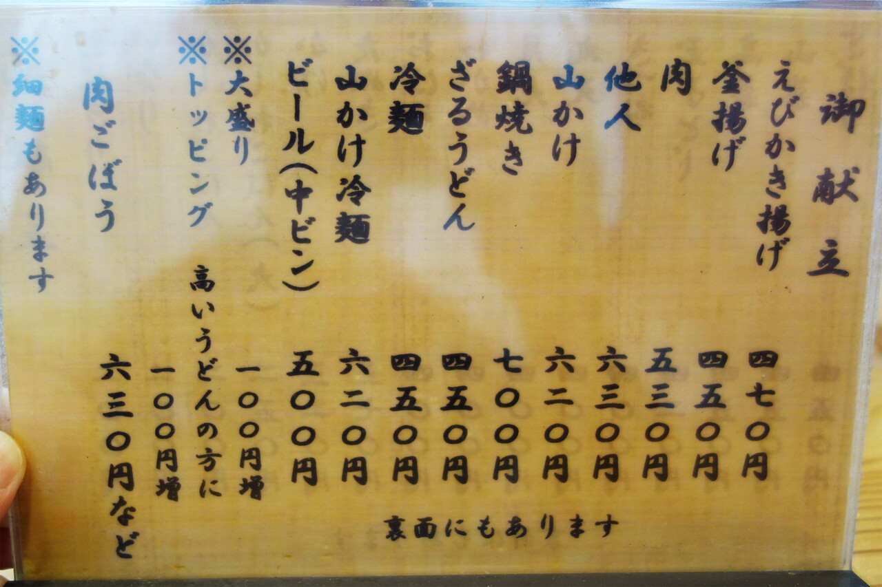 博多うどんの定番メニューの『ごぼう』は450円、『丸天』は400円。