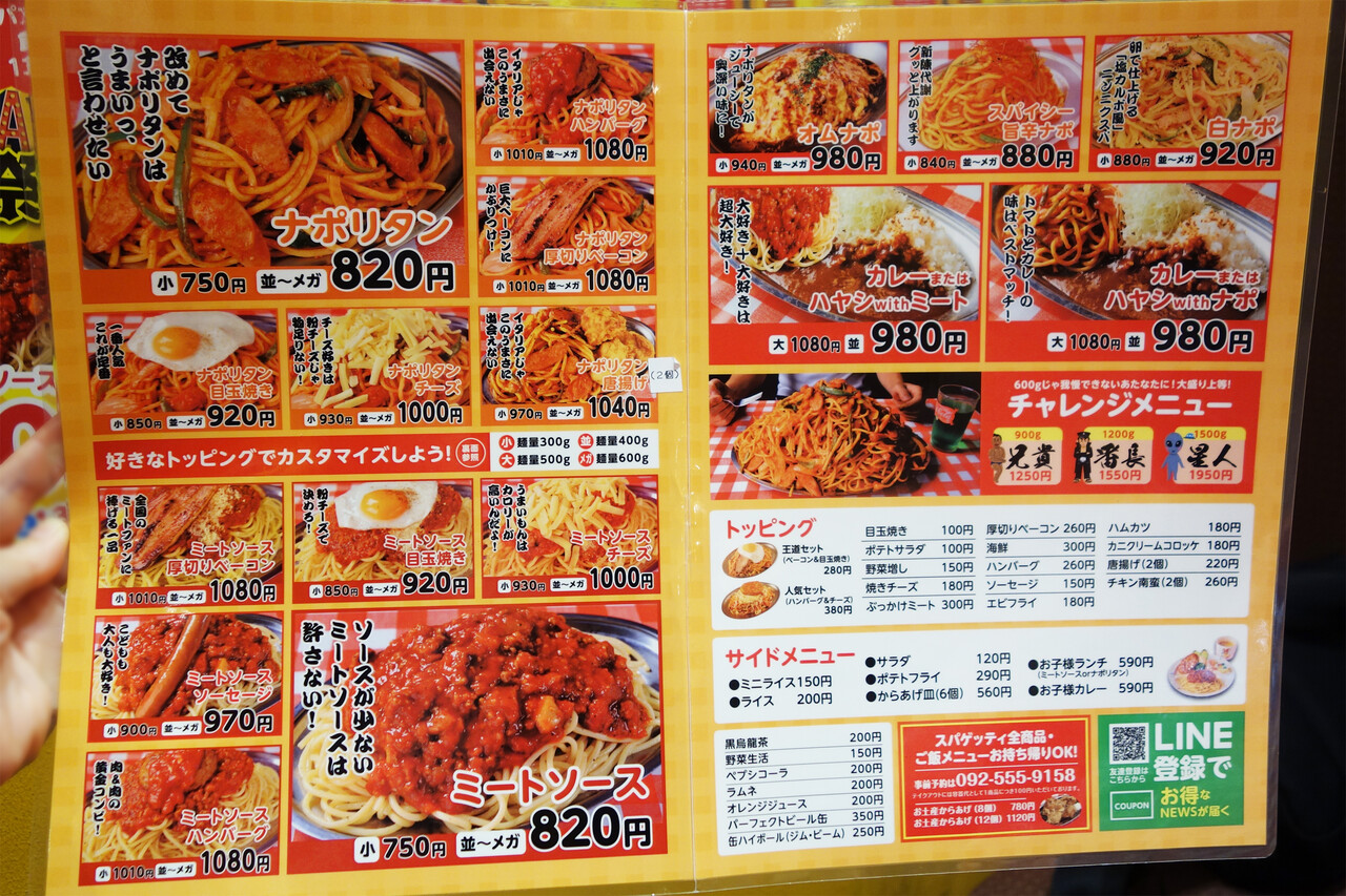 基本のナポリタンは、小750円・並〜メガ820円です。