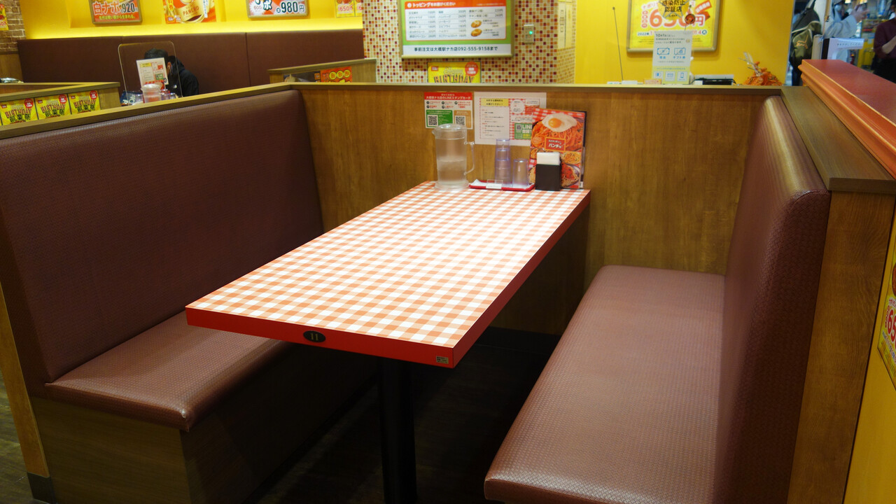 カウンター席はなく、お一人様や少人数は小さいテーブル席、
