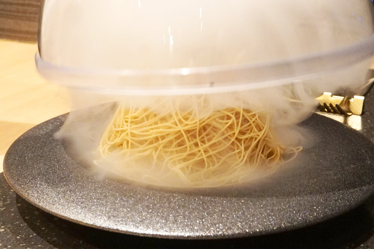 『黄金モンブラン』は、栗の香りがするスモークで閉じ込めます。