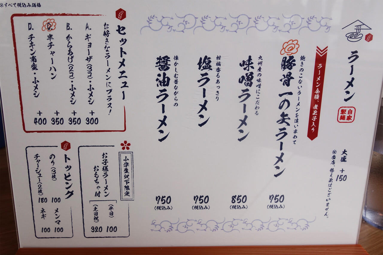 味噌ラーメンは850円ですが、豚骨・塩・醤油は750円。