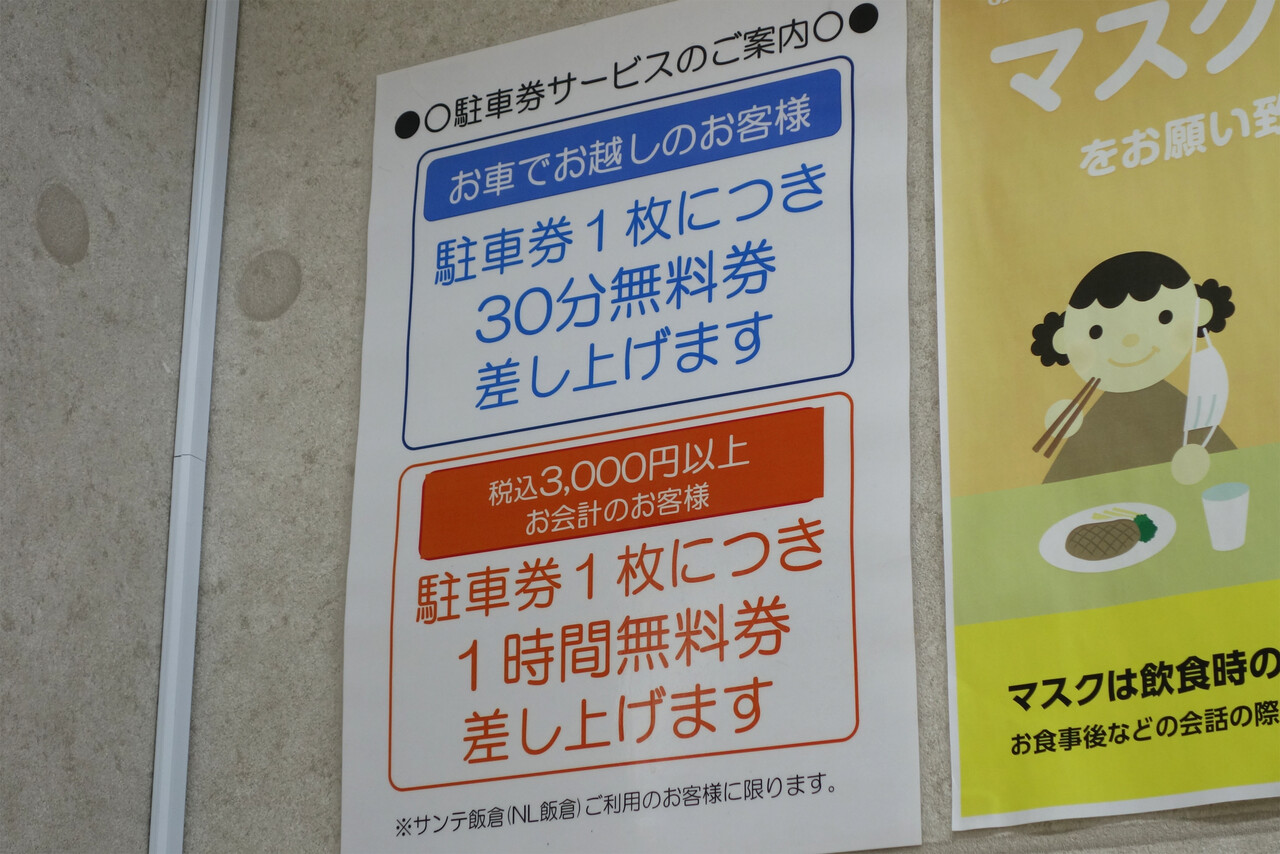 本店の並びにはコインパーキングがあり、割引サービスがあります。