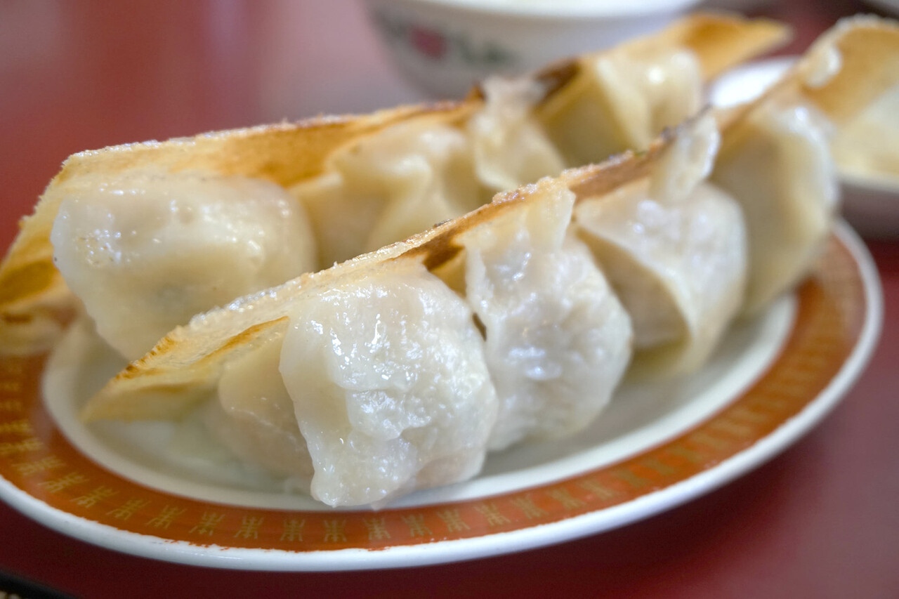 かなり大きい餃子で、カリカリの羽とむっちり厚皮のコントラストを楽しめます。