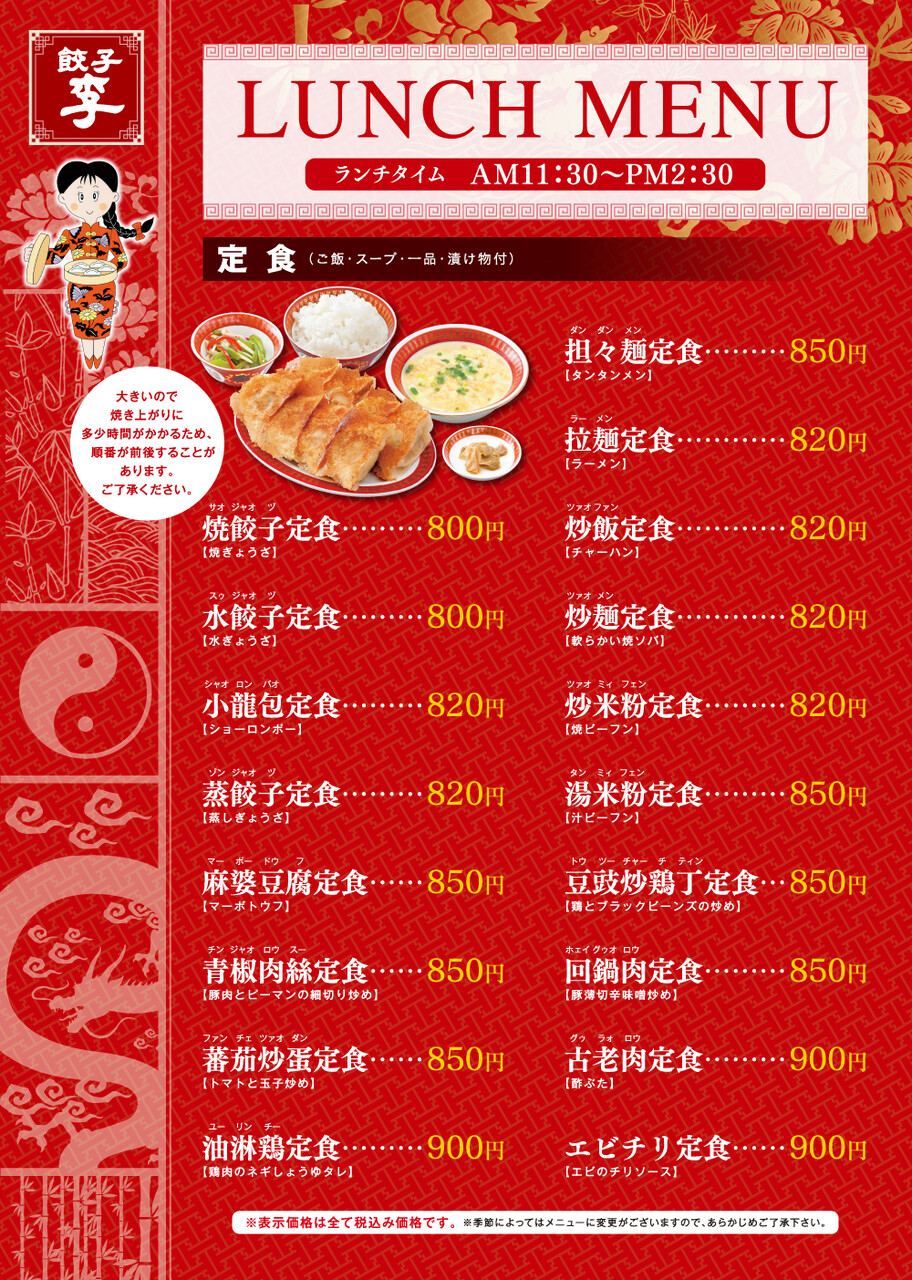 ランチメニューで特に人気なのが『焼餃子定食』800円。