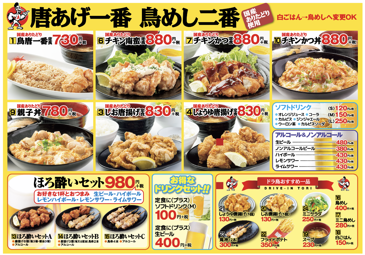 選べるドリンクと唐揚げ6個のセットです。