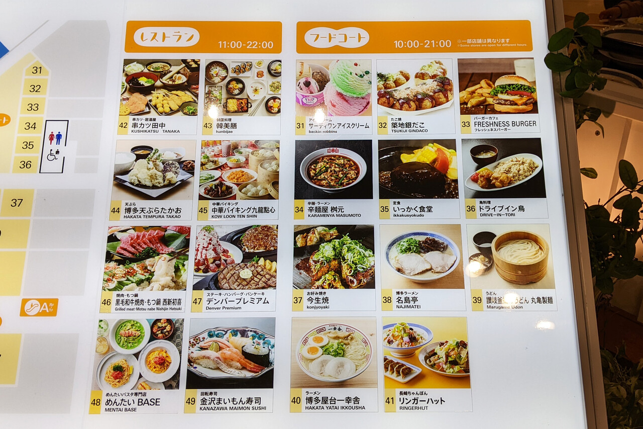 施設内にはレストランやフードコートがあります。