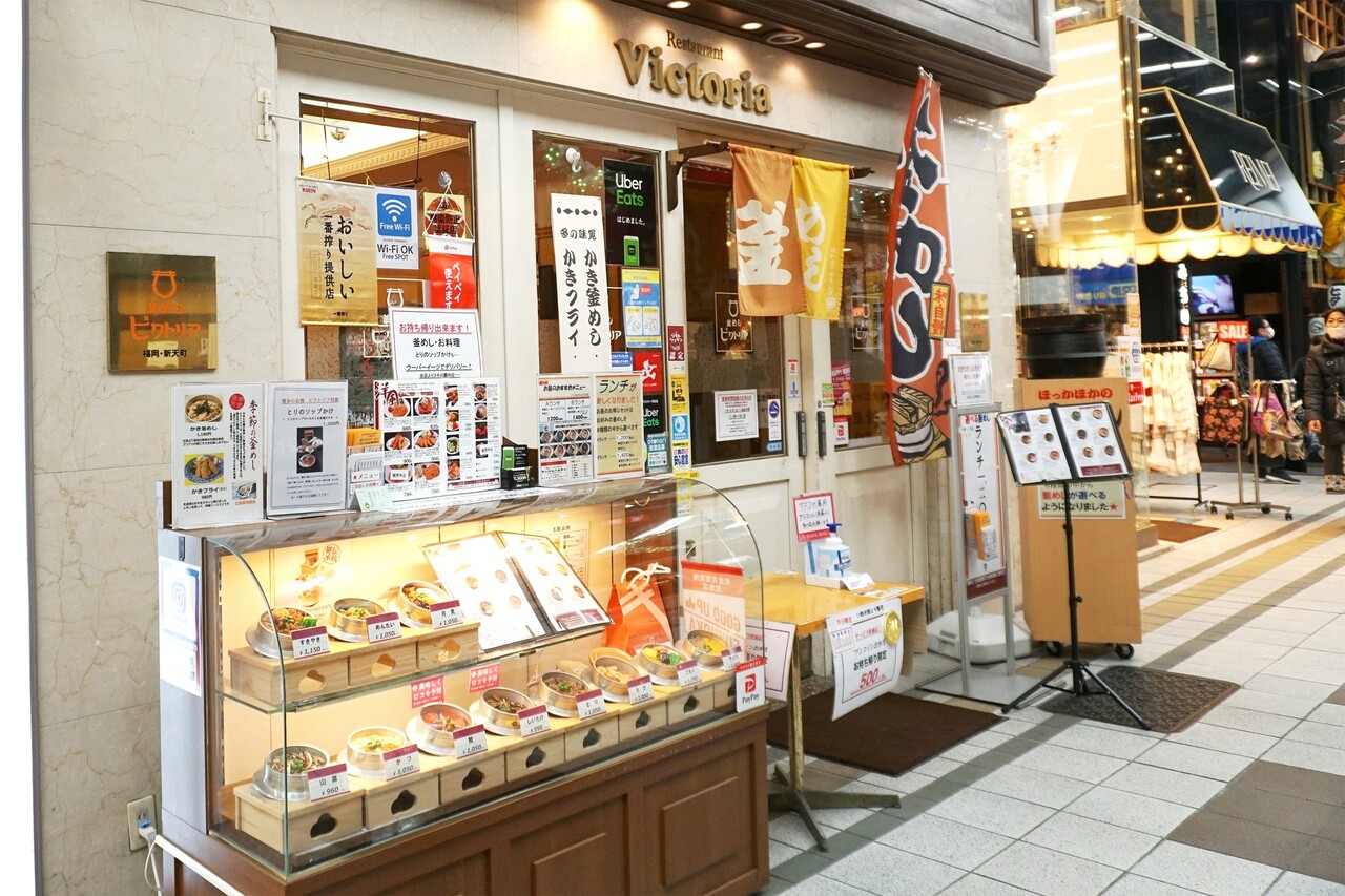 @hakataann 福岡市中央区天神の『ビクトリア』で釜飯ランチ。 1954年(昭和29年)、新天町アーケードで創業、福岡市民に愛されてきた『天神定番グルメ』です。 古くからある、お向かいのお蕎麦屋さん『飛うめ』、並びの舶来雑貨店『レイメイ』同様、 福岡市民には思い入れのあるお店でしょう。 季節限定の『かき釜めし』1,180円(2023年)。 広島より直送の生牡蠣を使用。 特製出汁に漬け込んで炊き上げた牡蠣はプリプリで美味しい。 ご飯にもしっかり旨味がしみていて、牡蠣の美味しさをたっぷり味わえます。 こちらはレギュラーメニュー。 『博多釜めし(そぼろ)』1,150円(2024年9月)は、子どもの頃より慣れ親しんでいる超定番のメニュー。 鶏出汁で炊いたあっさり風味のご飯に、ちょい濃いめのそぼろと甘めの炒り卵。 お昼は、赤だしや茶碗蒸しが付いた、お得なランチセットも選べます(1,300円/1,500円)。 テイクアウトも充実していて、通常のパック詰め(100円)の他、 陶器の特製釜(200円)に入ったものも人気です。 (『博多おんな節。』メニューなど画像多めのブログ記事『【福岡】天神ランチのド定番!メニュー豊富な釜飯専門店♪@釜めし ビクトリア』より一部抜粋) 【店名】釜めし ビクトリア 【住所】福岡県福岡市中央区天神2-7-144 新天町商店街内 #博多おんな節 #博多女節 #博多のあん #福岡ランチ #福岡グルメ #博多グルメ #天神ランチ #新天町 #ビクトリア #釜飯 #福岡ソウルフード #후쿠오카 #fukuoka #福冈 #MISIA #好いとっと ♬ MISIA 好いとっと - masa☆軍団 仁義